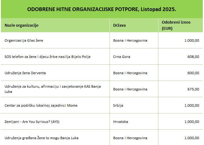 Ekumenska inicijativa žena nastavlja s programom dodjele hitnih organizacijskih potpora kojima se želi omogućiti partnerskim organizacijama da adekvatno odgovore na nepredviđene, hitne situacije koje ugrožavaju stabilnost ili otvaraju vremenski ograničene prilike za njihov razvoj.